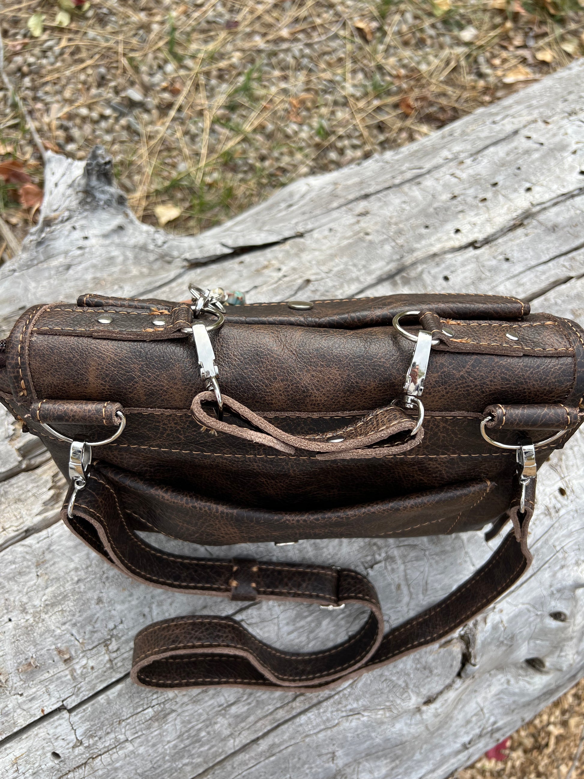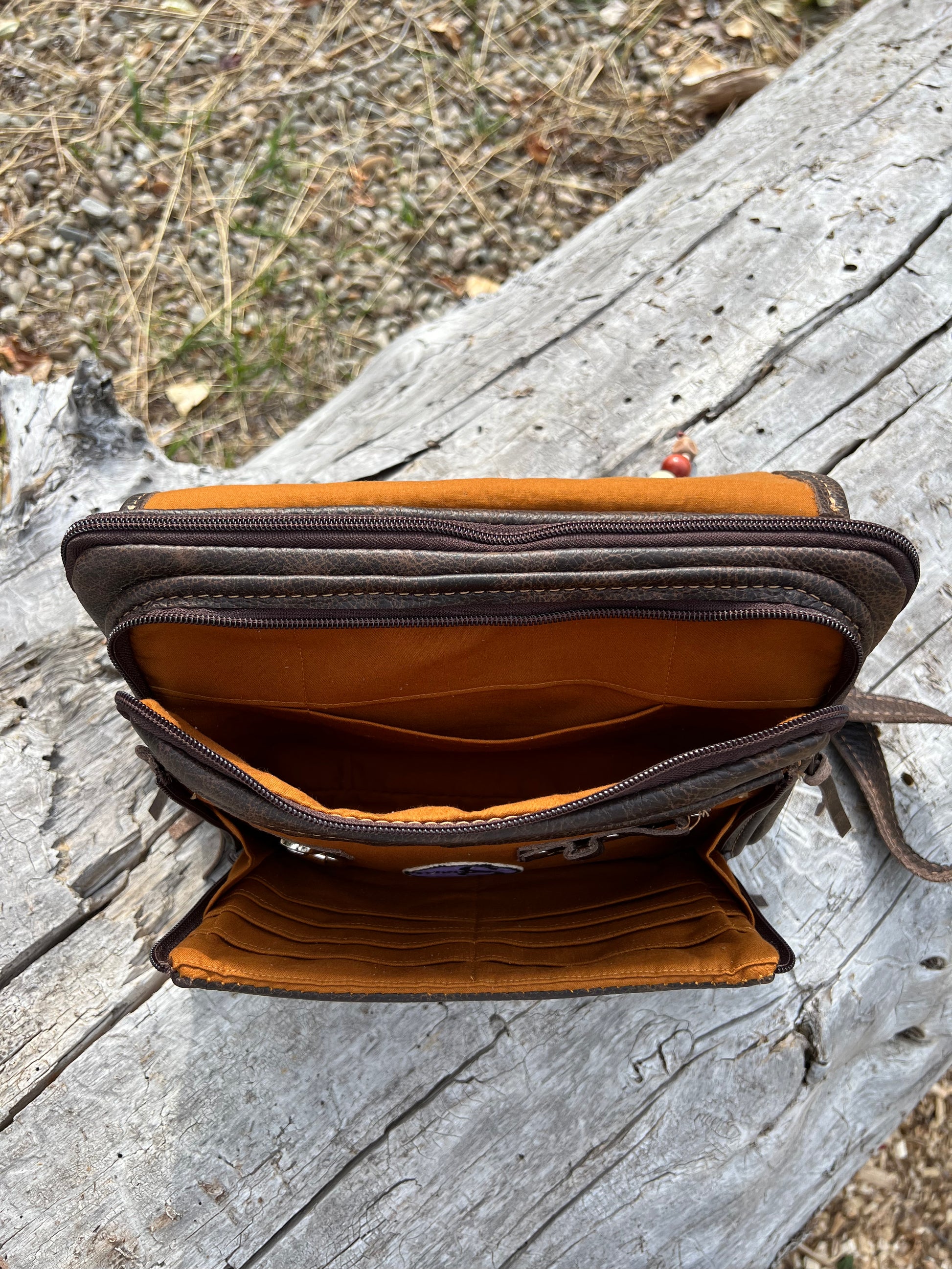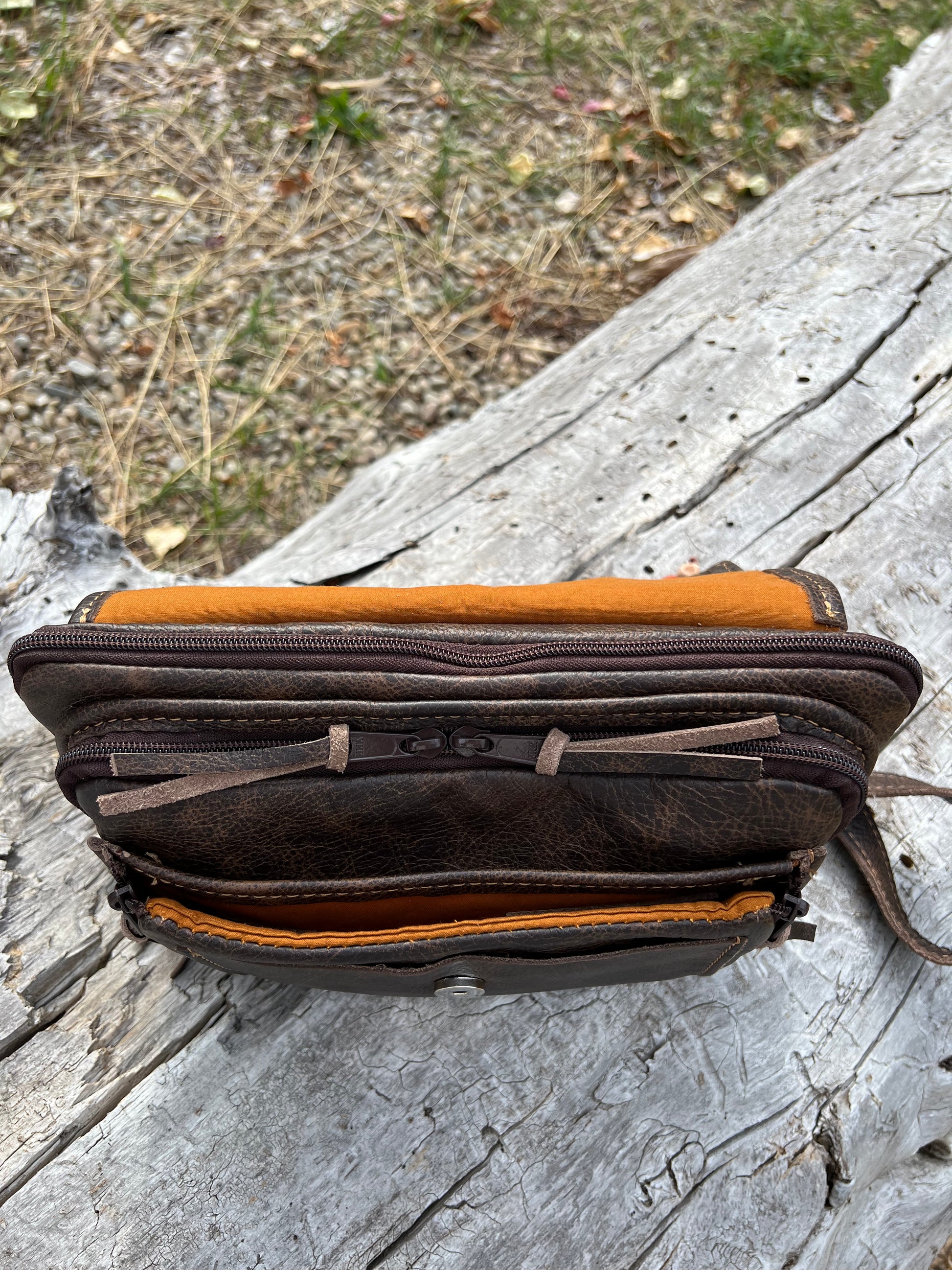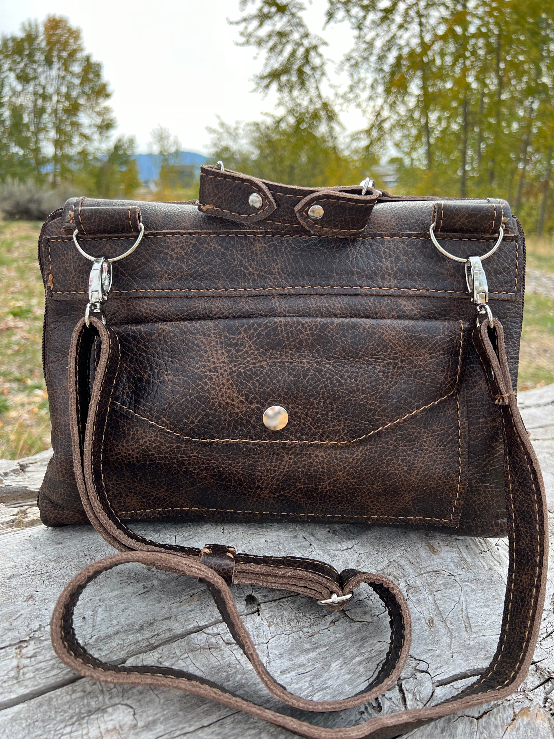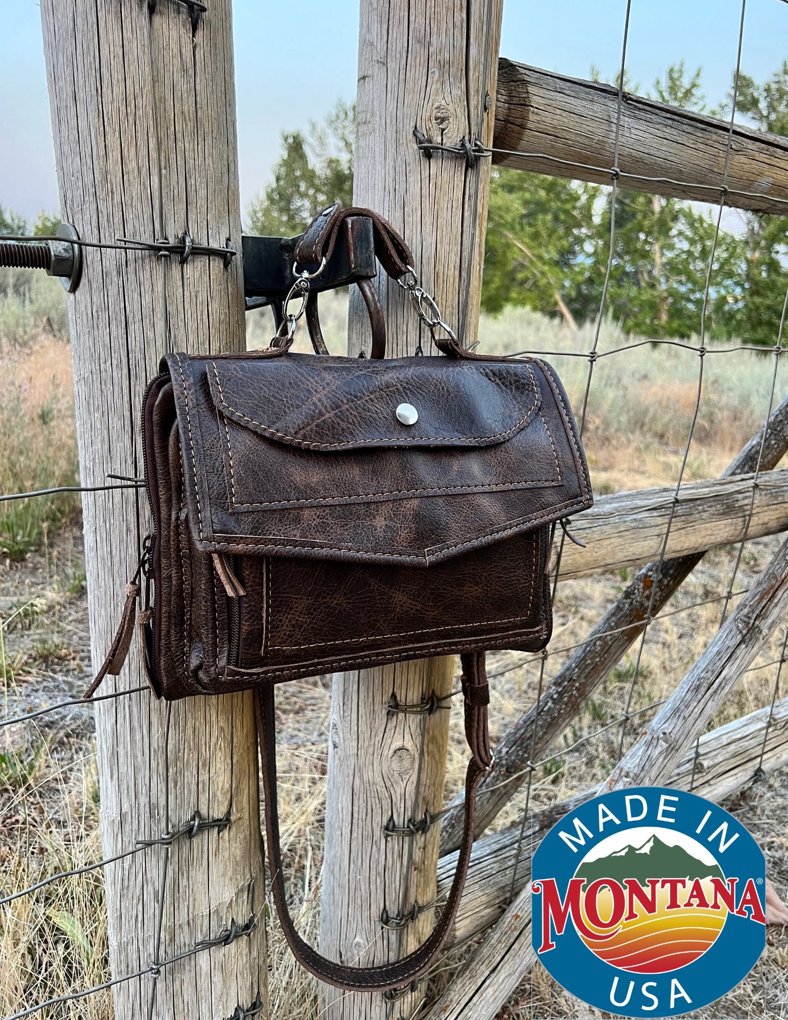 This bag is handmade by us in Corvallis, Montana and proudly bears the Made in Montana seal and has a lifetime warranty on hardware (zippers, rivets, snaps and seams).