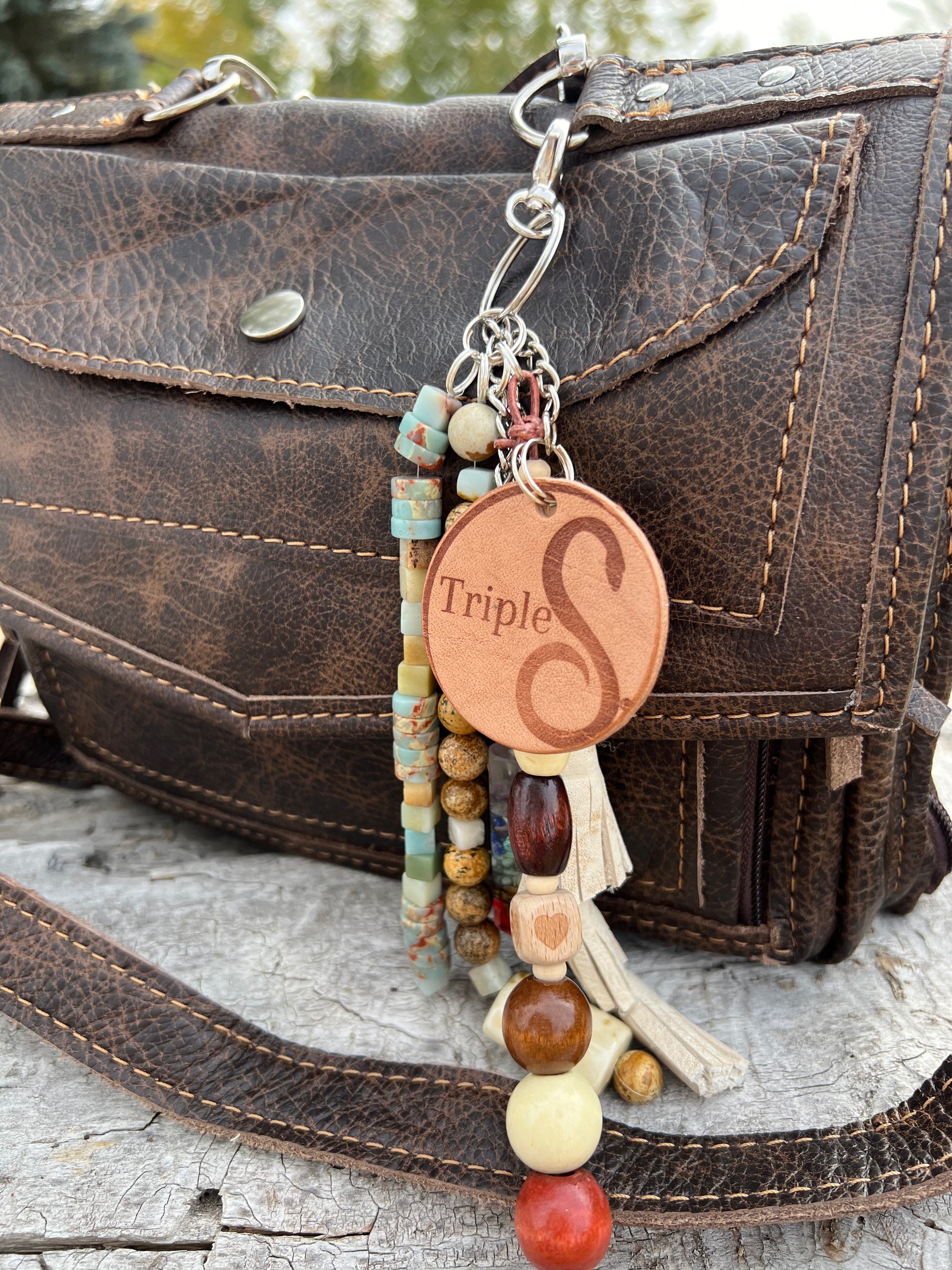 This bag comes with a 1" wide adjustable cross body strap, a 2" wide 21" shoulder strap and a top handle. This bag also comes with a Triple S bag charm!
